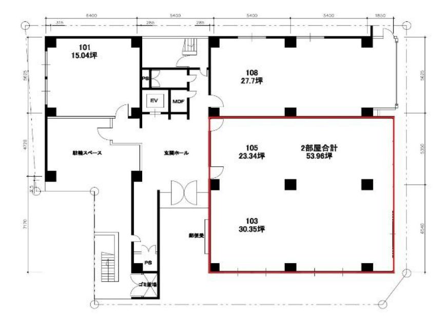 6階建てオフィスビルの1階路面区画