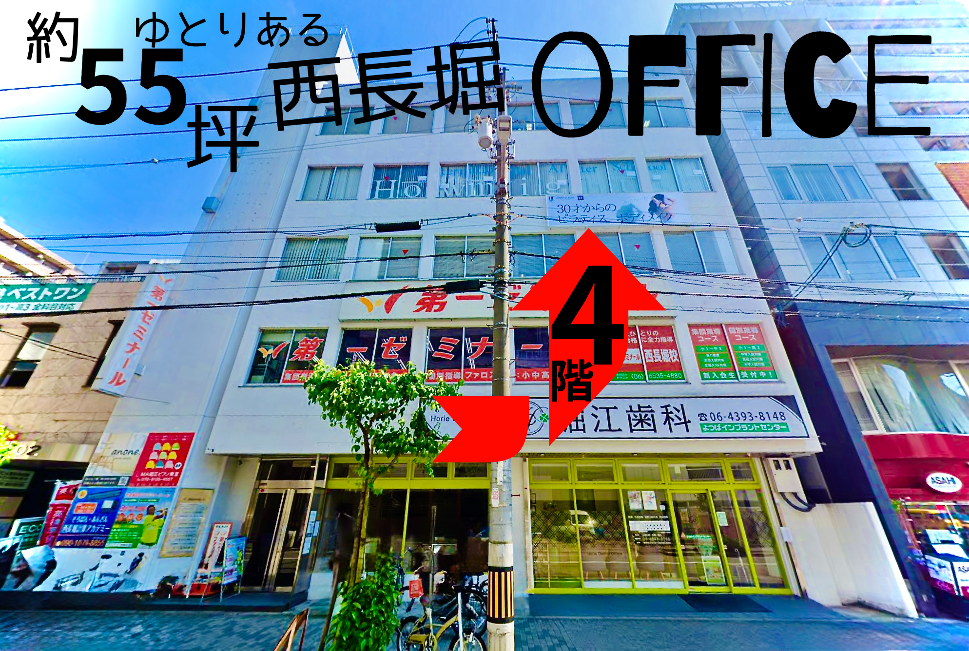 「西長堀駅徒歩1分、視認性の高い立地のオフィス物件。」