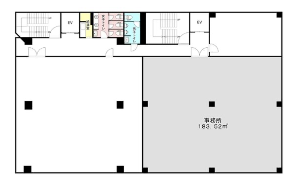約55.61坪のゆとりある空間はレイアウトの自由度が高く、複数部署での利用にも対応可能。