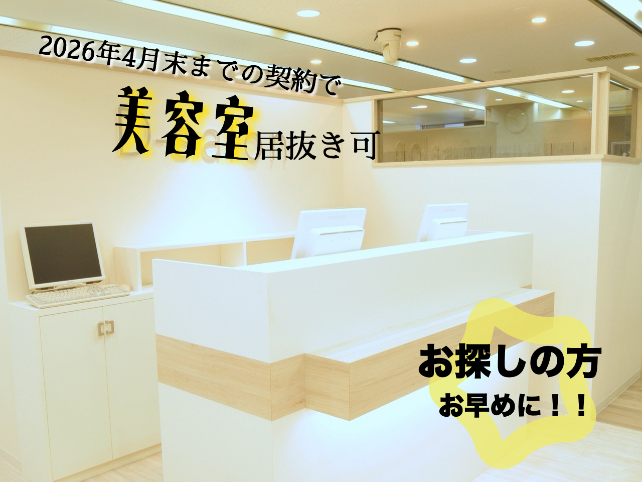 2026年4月末までの契約で美容室の居抜き相談も可能となっております。
