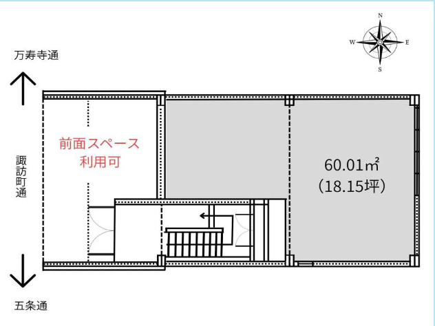 地下鉄烏丸線「五条駅」徒歩2分の好立地に位置する1階路面店舗の募集です。