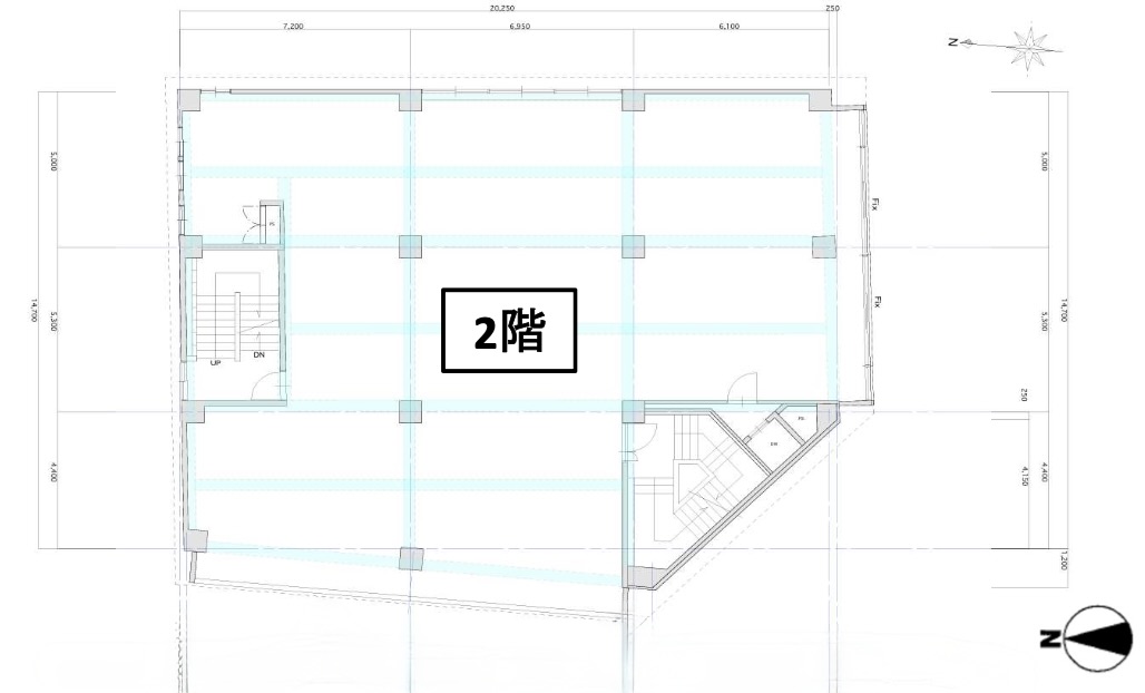 本区画は2階ワンフロア約103坪の大型空間となっており、