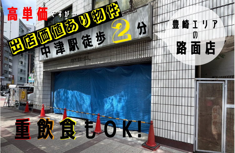 豊崎エリア 路面店舗 約11坪 中津徒歩2分 梅田徒歩6分 大阪徒歩10分 重飲食可能 スケルトン